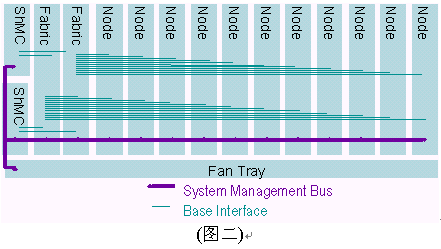 I2C總線使用100Khz時鐘和3.3V信號。ATCA規(guī)范制定要求2個IPMB總線,分別冠以IPMB-A和IPMB-B,兩條總線合一稱之為IPMB-0。IPMB可以以雙總線或雙星型配置方式實現(xiàn)。之所以要求雙IPMB總線是為了保證系統(tǒng)管理子系統(tǒng)的可靠性。IPMB總線被用作聯(lián)接ShMC與ATCA單板和ATCA機(jī)架中FRUs的橋梁。雙IPMB總線可同時被使用以加倍傳輸頻寬,但設(shè)計者必須考慮萬一其中一條IPMB總線失靈所帶來的沖擊。典型的ATCA背板上系統(tǒng)管理間的互聯(lián)如下圖所示,在背板上有兩個ShMC槽位,兩個交換槽位,11個節(jié)點槽位和1個風(fēng)扇的連接。值得說明的是管理總線與所有的節(jié)點槽、交換槽通過一對雙備援的ShMC聯(lián)接。