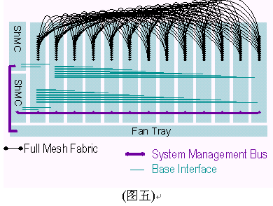 交換接口是ATCA機(jī)框中的主要數(shù)據(jù)傳輸接口。ATCA協(xié)議在每個板子上定義了多達(dá)15個通訊通路。這些通訊通路可以被配置成全網(wǎng)狀拓?fù)浣Y(jié)構(gòu)或雙星型拓?fù)浣Y(jié)構(gòu)。在雙星拓?fù)浣Y(jié)構(gòu)中每塊板同兩個不同的交換板都有通路。交換板在機(jī)框中扮演交換核心的角色。在全網(wǎng)狀拓?fù)浣Y(jié)構(gòu)中,每一個單板與其它任意單板都保持一個鏈接通路。下圖描繪了雙星型和全網(wǎng)狀結(jié)構(gòu)中的內(nèi)部互鏈的配置。