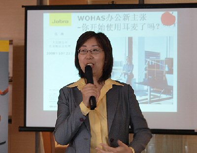 2008年10月21日,上海,來自丹麥的全球第一耳麥制造商GN大北歐在位于中山南路的老碼頭廣場內為旗下新推出的兩款辦公耳麥產品—Jabra