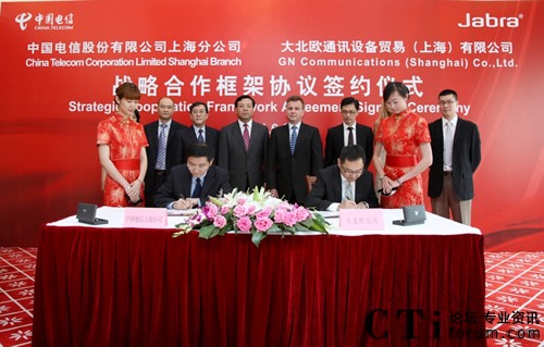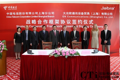 CTI論壇(ctiforum)6月23日消息(記者 楊佳林):上海—全球領(lǐng)先的創(chuàng)新耳麥解決方案提供商大北歐公司(GN Netcom)與中國電信上海公司(以下簡稱上海電信)今日隆重舉辦了 “戰(zhàn)略合作框架協(xié)議簽約儀式”。上海電信資深經(jīng)理花銳強、大北歐公司亞太區(qū)總裁Mark Leigh,及雙方公司高層領(lǐng)導(dǎo)共同出席了此次慶典。Mark Leigh先生還代表了大北歐公司將Edouard Suenson先生——“將電報引入中國的丹麥人”的雕像捐贈給上海電信博物館,見證了中國與丹麥源于19世紀(jì)末在通信方面的成功合作。