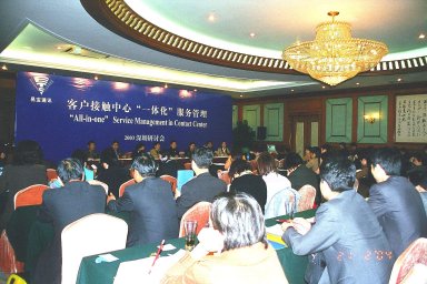2003年2月21日,五洲賓館長江廳高朋滿座,由香港資深Call Center服務(wù)商易寶通訊服務(wù)有限公司主辦的電信行業(yè)客戶接觸中心"一體化"服務(wù)管理研討會在這里隆重舉行。全國各地的電信、移動、聯(lián)通、網(wǎng)通等運營商及易寶的合作伙伴共四十多家單位的Call center負責(zé)人和專家參加了此次會議。
