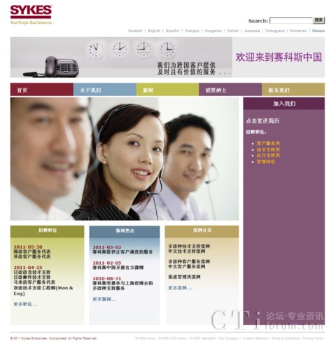 CTI論壇(ctiforum)8月8日消息(記者 潘婷婷): 為了更全方位地展現(xiàn)賽科斯中國的公司風貌,公司網(wǎng)站(www.sykes.com.cn)經(jīng)改版后于8月4日全新登場。新網(wǎng)站在風格、結(jié)構、內(nèi)容等方面作了整體改進,使得整個網(wǎng)站的表現(xiàn)更清晰,界面更友好。