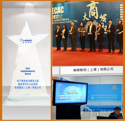維音電子商務行業(yè)的成功案例,在300余個參評案例中脫穎而出,成功突圍,獲得了“2012易觀EnfoCommerce Award電子商務技術服務之星最佳呼叫中心運營商”。