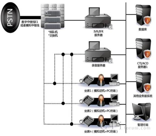 交換機方案是以電話交換為基礎搭建的呼叫中心,集成了PBX交換機,IVR語音導航,ACD智能排隊,CTI電腦系統(tǒng)管理,錄音與管理。系統(tǒng)處理能力在1000個坐席以上,系統(tǒng)可能性搞,支持分布式坐席。