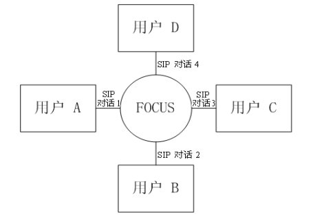 緊耦合會(huì)議的邏輯架構(gòu)圖如圖三所示。會(huì)議中的核心是"會(huì)議中心(conference focus)",每一個(gè)會(huì)議都有一個(gè)會(huì)議中心,由一個(gè)URI標(biāo)識(shí),用戶通過(guò)聯(lián)系這個(gè)URI參加到一個(gè)會(huì)議中去。會(huì)議中心和用戶之間的拓?fù)浣Y(jié)構(gòu)為星性結(jié)構(gòu)。會(huì)議中心為用戶提供并維持一個(gè)信令連接,并且可以執(zhí)行會(huì)議策略,實(shí)現(xiàn)對(duì)會(huì)議的控制和管理。