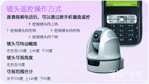 前端攝像頭可以上下左右靈活轉(zhuǎn)動(dòng),隨意安放在家中、商鋪中的合適位置。用戶的手機(jī)無(wú)需安裝客戶端軟件,即可通過(guò)視頻電話直接呼叫前端攝像頭,然后通過(guò)12個(gè)數(shù)字鍵控制前端云臺(tái)轉(zhuǎn)動(dòng)、變焦、錄像、回放等操作。