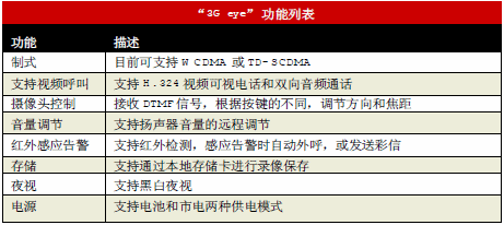 “3Geye”業(yè)務(wù)是由上海貝爾股份有限公司開(kāi)發(fā)的一個(gè)針對(duì)家庭及小型商品市場(chǎng)的視頻監(jiān)控類(lèi)業(yè)務(wù),它利用3G中獨(dú)有的64K視頻電路域,建立起用戶與前端攝像頭的視頻電話,從而達(dá)到視頻監(jiān)控的目的。