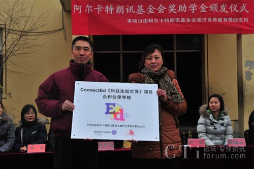 CTI論壇(ctiforum)3月6日消息(記者 浩宇):近日,法國阿爾卡特朗訊基金會(huì)(Alcatel-Lucent Foundation)與美國非營利組織世界教育(World Education)在北京市大興區(qū)農(nóng)民工子弟學(xué)校——龍海學(xué)校聯(lián)合舉辦公益助學(xué)活動(dòng),來自阿爾卡特朗訊中國旗艦企業(yè)——上海貝爾及世界教育的志愿者為45名貧困生、72名成績優(yōu)秀學(xué)生、244名成績進(jìn)步獎(jiǎng)獲得者共計(jì)361人發(fā)放獎(jiǎng)助學(xué)金和獎(jiǎng)狀。此次活動(dòng)是ConnectEd“科技連結(jié)世界”項(xiàng)目協(xié)助流動(dòng)青少年“透過科技擁抱世界”系列公益活動(dòng)的重要一站,ConnectEd “科技連結(jié)世界”項(xiàng)目由阿爾卡特朗訊基金會(huì)(Alcatel-Lucent Foundation)與世界教育(World Education)共同在全球推動(dòng)。作為志愿者之一,上海貝爾執(zhí)行副總裁、阿爾卡特朗訊中國區(qū)產(chǎn)品與研發(fā)負(fù)責(zé)人莊靖博士參與了此次活動(dòng),并為阿爾卡特朗訊ConnectEd項(xiàng)目合作校揭牌。雙方還在北京市昌平區(qū)新源學(xué)校舉行了公益助學(xué)活動(dòng),為45名貧困生、39名成績優(yōu)秀學(xué)生、52名成績進(jìn)步獎(jiǎng)獲得者共計(jì)136人發(fā)放獎(jiǎng)助學(xué)金。