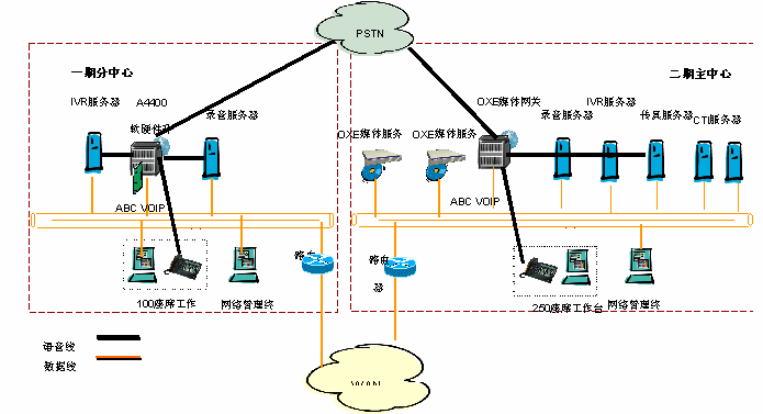 基礎(chǔ)語音系統(tǒng)采用阿爾卡特OmniPCX Enterprise語音通信平臺(tái),它采用分布式的語音體系架構(gòu),完全融合IP技術(shù),并可集成傳統(tǒng)的TDM語音。OmniPCX Enterprise提供開放的標(biāo)準(zhǔn)和靈活的擴(kuò)展能力,并提供99.999%的高可靠性。讓用戶靈活的配置其座席的地理位置和通信方式,并保證系統(tǒng)運(yùn)行安全可靠。OmniPCX Enterprise交換機(jī)(二期)計(jì)劃采用Appliance Server呼叫服務(wù)器雙備份結(jié)構(gòu),提供RSI接口與GENESYS相連,以及并線錄音系統(tǒng)接口。今后,項(xiàng)目還將采用先進(jìn)的阿爾卡特-My Phone IP WEB軟電話,提高內(nèi)部通信能力,優(yōu)化業(yè)務(wù)流程。