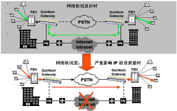 。。Quintum TASQTM專(zhuān)利技術(shù)可動(dòng)態(tài)監(jiān)控網(wǎng)絡(luò)流量狀況,在任何時(shí)刻當(dāng)網(wǎng)絡(luò)頻寬低于企業(yè)預(yù)設(shè)門(mén)限值,以致于無(wú)法負(fù)荷企業(yè)所要求的語(yǔ)音品質(zhì)時(shí),語(yǔ)音回路將自動(dòng)切換到傳統(tǒng)