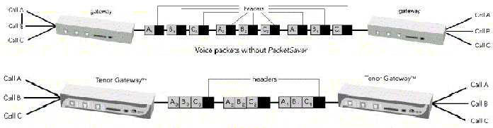saverTM會(huì)將同一時(shí)間通話(huà)中將同一個(gè)目的地的所有語(yǔ)音IP包的包頭部分共享,這樣可以節(jié)省許多頻寬,并加快設(shè)備運(yùn)作的速度。經(jīng)過(guò)實(shí)驗(yàn)證明:只需三方電話(huà)就可改善40%的頻寬使用效率。此特色讓Quintum