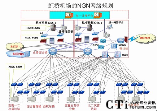 虹橋機(jī)場(chǎng)程控交換機(jī)新建和擴(kuò)容項(xiàng)目,實(shí)際上是一個(gè)包含多業(yè)務(wù)的項(xiàng)目和系統(tǒng),即以數(shù)據(jù)網(wǎng)絡(luò)作為基礎(chǔ)承載平臺(tái),軟交換作為核心技術(shù),為用戶提供了豐富的業(yè)務(wù),很好地解決了話音、數(shù)據(jù)業(yè)務(wù)的融合。
