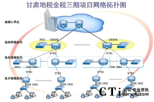 為了實(shí)現(xiàn)這個(gè)目標(biāo),甘肅地稅金稅三期計(jì)劃建立包括甘肅地稅全省網(wǎng)絡(luò)的省、市、縣、所四級(jí)設(shè)備,即省級(jí)核心路由器及交換機(jī)、地市路由器及交換機(jī)、縣級(jí)路由器及交換機(jī)和稅務(wù)所級(jí)路由器及交換機(jī),包含300多臺(tái)高中低端路由器及400多臺(tái)高中低端交換機(jī)設(shè)備。經(jīng)過綜合評(píng)選和激烈的競(jìng)爭(zhēng),甘肅省地稅金稅三期重點(diǎn)項(xiàng)目花落中興通訊。
