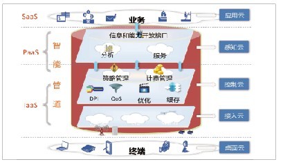 云化的智能管道如圖1所示,包括桌面云->接入云->控制云->感知云->應用云,實際上是端管云一體化的網(wǎng)絡架構(gòu),建立一個可以自感知、自學習、自組織、自適配、自管理的數(shù)字神經(jīng)網(wǎng)絡,提供云化的不同層次業(yè)務。