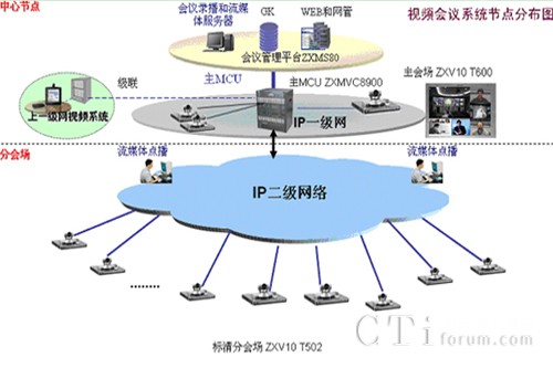 為此,中興通訊選擇了ZXMVC8900基于電信級(jí)交換機(jī)架構(gòu)的MCU,而會(huì)場(chǎng)終端根據(jù)樂(lè)山地稅局的要求,我們分別采用ZXV10 T600 高清視頻終端,ZXV10 T502標(biāo)清終端。全兼容智能視訊服務(wù)器ZXMVC8900采用電信交換機(jī)架構(gòu)設(shè)計(jì),全面支持ITU-T H.323、H.320協(xié)議,可通過(guò)不同網(wǎng)絡(luò)(IP、ISDN、DDN、SDH、ATM、衛(wèi)星等)接入用戶終端,并組織召開視頻會(huì)議,具有全兼容各種網(wǎng)絡(luò)、支持DVD級(jí)高清會(huì)議、支持H.264編解碼協(xié)議、H.460防火墻穿越、H.235加密、H.239雙視頻流、T.140短消息橫幅、終端主叫呼集等先進(jìn)技術(shù),最高支持8M帶寬和4CIF圖像分辨率,為用戶提供DVD級(jí)的高清晰會(huì)議體驗(yàn)。采用單插板設(shè)計(jì),在將來(lái)需求增加的時(shí)候可以通過(guò)增加板卡最大擴(kuò)展至192路,充分保護(hù)用戶投資。ZXV10 T600是中興通訊推出的新一代分體式雙模高清視頻會(huì)議終端,支持1080P,720P高清編解碼和8M會(huì)議帶寬;支持H.320和H.323雙協(xié)議、藍(lán)牙技術(shù)、H.460防火墻穿越、H.235加密、H.239雙視頻流、T.140短消息橫幅、終端主叫呼集等最新技術(shù)。