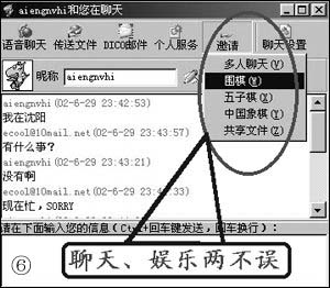 5、夢(mèng)幻尋呼(DICO):郵件群發(fā)功能;豐富的插件使得我們可以聊天娛樂(lè)兩不誤(如圖6);方便清晰的語(yǔ)音聊天功能——能夠穿透防火墻,達(dá)到電話的音質(zhì)效果;個(gè)人Web服務(wù)——可以把你的個(gè)人電腦輕松設(shè)置成一個(gè)Internet