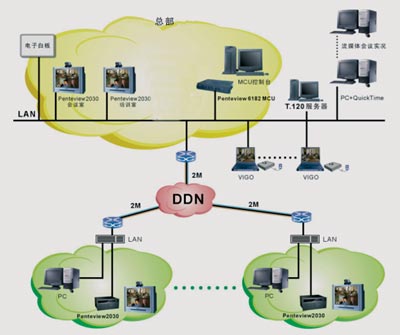 在上述網(wǎng)絡(luò)結(jié)構(gòu)中,還可以方便地繼續(xù)發(fā)展第三級(jí)視頻會(huì)議子網(wǎng)。正如前面提到的,這個(gè)第三級(jí)子網(wǎng)中,完全可以使用普通視頻會(huì)議終端,以節(jié)約大量費(fèi)用。