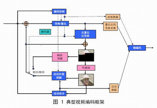 AVS視頻與MPEG標(biāo)準(zhǔn)都采用混合編碼框架(見圖1),包括變換、量化、熵編碼、幀內(nèi)預(yù)測、幀間預(yù)測、環(huán)路濾波等技術(shù)模塊,這是當(dāng)前主流的技術(shù)路線。AVS的主要創(chuàng)新在于提出了一批具體的優(yōu)化技術(shù),在較低的復(fù)雜度下實(shí)現(xiàn)了與國際標(biāo)準(zhǔn)相當(dāng)?shù)募夹g(shù)性能,但并未使用國際標(biāo)準(zhǔn)背后的大量復(fù)雜的專利。AVS-視頻當(dāng)中具有特征性的核心技術(shù)包括:8x8整數(shù)變換、量化、幀內(nèi)預(yù)測、1/4精度像素插值、特殊的幀間預(yù)測運(yùn)動補(bǔ)償、二維熵編碼、去塊效應(yīng)環(huán)內(nèi)濾波等。