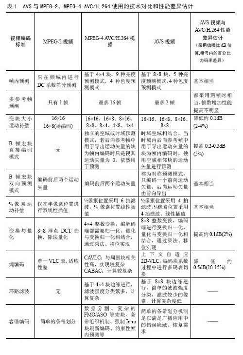 AVS與國際標(biāo)準(zhǔn)MPEG的比較