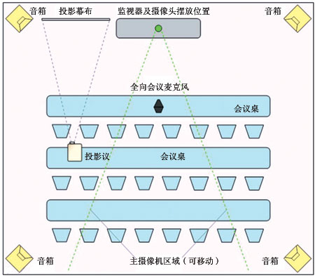 圖2 典型的視頻會議室布置圖
