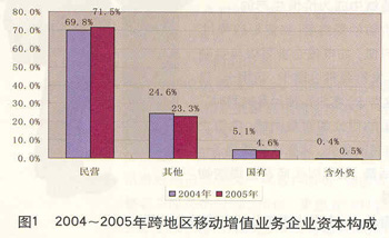 電信市場(chǎng)的開(kāi)放吸引了大量中小企業(yè),而他們進(jìn)入的領(lǐng)域也大多集中在增值服務(wù)市場(chǎng)。目前,中國(guó)的電信增值服務(wù)市場(chǎng)的各類中小企業(yè)已達(dá)到上萬(wàn)家,業(yè)務(wù)范圍幾乎涉及全部增值領(lǐng)域,成為通信經(jīng)營(yíng)服務(wù)業(yè)務(wù)的重要組成部分。在1.4萬(wàn)家電信增值企業(yè)中,民營(yíng)企業(yè)比例占到55.37%,民營(yíng)資本已經(jīng)成為該市場(chǎng)的主體。