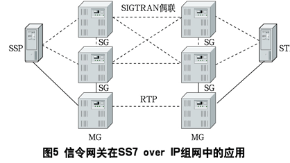 的 R4及R5中規(guī)定3G網(wǎng)絡(luò)采用軟交換體系進(jìn)行組網(wǎng),各網(wǎng)元之間的媒體及信令都基于IP網(wǎng)進(jìn)行承載。信令網(wǎng)關(guān)的出現(xiàn)使SS7 over IP成為可能,這樣做增加了信令帶寬,減小了對(duì)其它網(wǎng)絡(luò)資源的壓力。