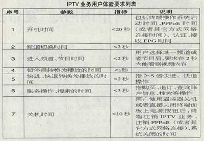 IPTV業(yè)務(wù)用戶體驗要求如下表所示。