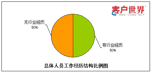 呼叫中心由于高壓力、24小時輪班等工作特性,有相當(dāng)比例的流失是因為不適應(yīng)工作環(huán)境而導(dǎo)致的,其中一個主要原因就是新入職員工想象中的工作環(huán)境和現(xiàn)實情況大相徑庭。而有呼叫中心工作經(jīng)驗的員工對于這點的適應(yīng)性相對較強,因此我們對呼叫中心員工是否有行業(yè)經(jīng)歷方面的情況進行了統(tǒng)計分析。