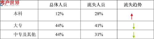 2.流失人員的學(xué)歷結(jié)構(gòu)比例