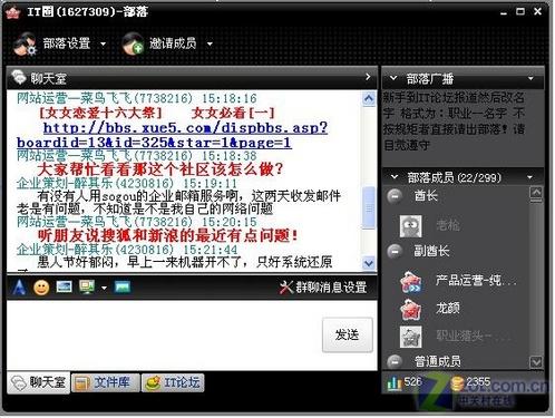 在群聊的過程中兩款軟件都各特色。百度Hi的特色是當(dāng)用戶向群中一個(gè)不是自己好友的人發(fā)送信息時(shí),該用戶會(huì)在百度網(wǎng)頁短信息中可以收到消息,此項(xiàng)功能十分適合上班時(shí)不能打開聊天軟件的朋友使用。Lava則是將群功能體現(xiàn)的更加強(qiáng)大些,除了消息發(fā)送外可以建立屬于群部落的文件庫,就是這個(gè)部落的藏寶室,有什么好東東都可以放進(jìn)去,簡(jiǎn)直就是超大的網(wǎng)絡(luò)硬盤。(圖9、圖10)