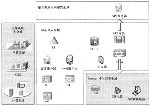 圖1 軟交換網(wǎng)絡(luò)安全域的劃分