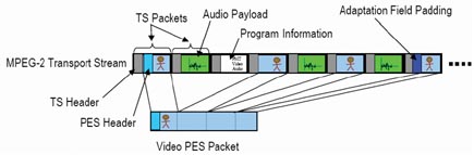 TS(MPEG Transport Stream)包括多元的語音和視頻流封裝并承載在RTP/UDP或者直接在UDP上進(jìn)行視頻傳送。并且通過PID進(jìn)行語音和視頻的同步。TS流分為單節(jié)目的TS流(SPTS,Single