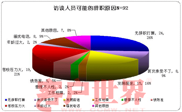 圖三:某通信集團一家呼叫中心2008年員工訪談——員工潛在的離職原因