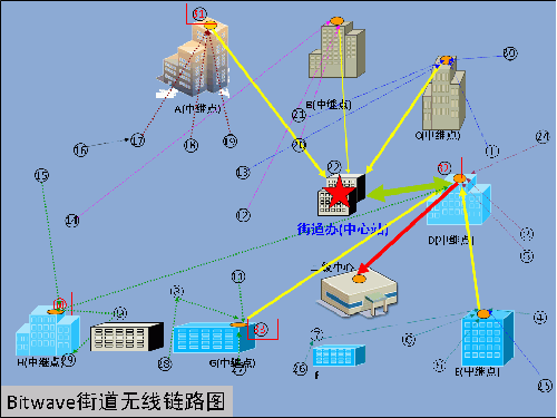 對于大型社區(qū),也包括一些老城區(qū),實際環(huán)境是非常復(fù)雜的。比如老城區(qū),成片的平房、高低交錯的樓房、高矮不同的大樹,這些都對無線鏈路的架設(shè)增加了難度。Bitwave憑借在電力、油田、礦山等特殊行業(yè)所積累的施工經(jīng)驗,利用跳接、中繼等方式輕松解決了這一難題。
