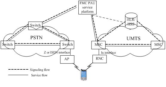 在FMC-PAU中,移動終端屬于雙;蚨嗄=K端,用戶使用該終端既可以接入到3G移動網(wǎng),也可以采用無線方式通過接入節(jié)點(diǎn)(AP)接入到PSTN網(wǎng)絡(luò)中。
