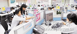 15日,重慶市電力公司客戶服務中心95598熱線大廳,仍然是一片繁忙:帶著耳麥的接線員一邊和用戶對答,一邊熟練地輸入數(shù)據(jù),填寫保修單提交,然后按下另一個等待的電話。