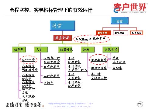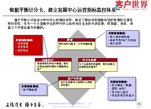 第一,是依據平衡計分卡原理,建立了客服中心運營指標監(jiān)控體系,以實現(xiàn)呼叫中心的規(guī);洕\營。