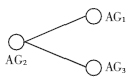 本文把參與IP視頻會議所有主機中的AM組織成分層排列圖結(jié)構(gòu),作為混合式組播的控制拓?fù)?并在主機申請加入會議時根據(jù)其帶寬處理能力和一定的算法規(guī)定它的入度最大值和出度最大值,它們分別也是剩余入度和剩余出度的初始值。每個分層排列圖都對應(yīng)一棵以排列圖為結(jié)點單位的樹。如圖3所示的以與會主機為單位的拓?fù)浣Y(jié)構(gòu)是一個由3個A4,2結(jié)構(gòu)(AG1、AG2和AG3)所組成的分層排列圖。圖3也可以看作如圖4所示的以排列圖為單位的樹結(jié)構(gòu),即以排列圖AG2為根、以AG1和AG3為葉子的一棵樹狀拓?fù)洹TO(shè)在分層排列圖中,父排列圖AGi中的結(jié)點i1和i2分別是子排列圖AGj的數(shù)據(jù)源結(jié)點和備用數(shù)據(jù)源結(jié)點,AGj中的結(jié)點j1和j2分別是i1和i2對應(yīng)的根結(jié)點,則在樹拓?fù)渲懈概帕袌DAGi與子排列圖AGj的連線實際上包括2條 1)i1與j1之間的連線;(2)i2與j2之間的連線。圖4中父排列圖AG2與其子排列圖AG1之間的連線有2條:(1)圖3中AG2的a14與AG1的a31之間的連線;(2)圖3 中AG2的a24與AG1的a41之間的連線。各排列圖之間的連線在混合式組播中并不一定作為數(shù)據(jù)傳輸路徑。