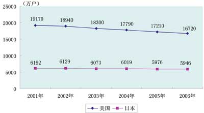 關于固定電話受沖擊的現(xiàn)象,美國比日本更加突出,這是因為美國大的通信公司除了提供電話、電視和高速上網捆綁服務外,基本上不提供IP電話(普通電話機經本地市話交換機以及網關進入因特網)和VoIP電話(普通電話機經電話連接器進入因特網)。美國衛(wèi)生統(tǒng)計中心公布的數(shù)據(jù)顯示,2007年下半年,美國只有移動電話而沒有固定電話的家庭比例達到15.8%,這一比例在2004年同期只有6.1%,大約2%的美國家庭沒有電話。