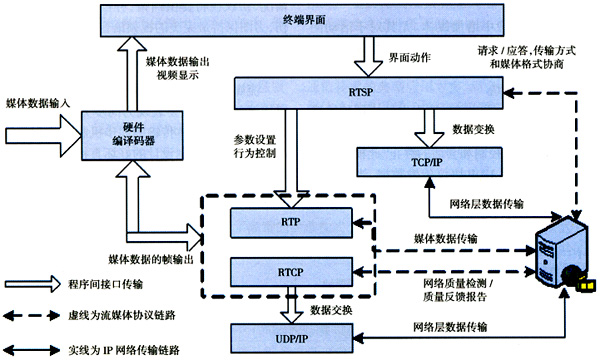 網(wǎng)絡(luò)的帶寬是完成流媒體傳輸?shù)奈镔|(zhì)基礎(chǔ),在傳輸聲音、圖像、視頻等多媒體信息流時,即使這些媒體流予以壓縮,所需的帶寬仍然比文字文件大,但并不是有足夠的帶寬就可以完全解決流媒體傳輸問題。一般而言,所需帶寬的多少是與應(yīng)用密切相關(guān)的,從應(yīng)用角度來看,只要用戶數(shù)不斷增加、信息服務(wù)量不斷增加,帶寬有多少都是不夠的。同步是媒體流的基本控制方法。流媒體是時間屬性的表現(xiàn),這依賴于RTSP協(xié)議棧。