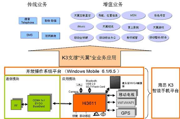 K3方案中集成了GPS、WAPI/WiFi、CMMB(帶CA)的等各種主流應(yīng)用,手機(jī)廠商在選擇時可以快速的剪裁、組合,形成不同配置的天翼手機(jī)系列,來滿足不同消費群體的需求。