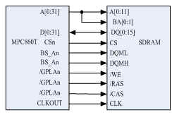 圖4 SDRAM與MPC860T的連接框圖