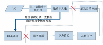 以圖4智能網(wǎng)充值開機(jī)流程為例,其經(jīng)歷的步驟繁多,特別是其中信控判斷邏輯復(fù)雜,程序處理耗時(shí)多,是引起月結(jié)用戶充值到賬但無法及時(shí)開機(jī)的關(guān)鍵環(huán)節(jié)。站在服務(wù)用戶的角度,最直接的應(yīng)急方式便是提取已繳費(fèi)入賬的號碼直接送HLR施工開機(jī),對于存在欠費(fèi)可能的用戶,其開機(jī)狀態(tài)在正常流程進(jìn)行修復(fù),但對于充值后仍欠費(fèi)的用戶,其開機(jī)狀態(tài)將在經(jīng)歷過信控后自動(dòng)被修改為停機(jī)。