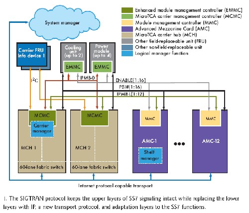 信令網(wǎng)關(guān)用于橋接下一代IP網(wǎng)絡和傳統(tǒng)的包交換電話網(wǎng)絡(PSTN),處理的主要是呼叫建立、控制和計費等信號。網(wǎng)關(guān)設計要求融合IP協(xié)議、傳統(tǒng)的交換電路協(xié)議、操作系統(tǒng)、管理以及高可靠性的硬件系統(tǒng)設計。MicroTCA、AdvancedMC硬件和現(xiàn)成軟件可以提供構(gòu)建模塊用于開發(fā)獨立的信令網(wǎng)關(guān)設計,這樣設計出來的網(wǎng)關(guān)很容易隨著IP電話需求的增加而進一步擴展。