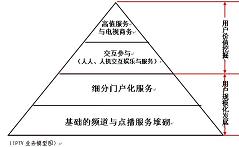擁有4億多注冊用戶的騰訊,占有中國即時通信80%的市場份額,互聯(lián)網(wǎng)行業(yè)贏家通吃的定律顯露無疑,騰訊在海量用戶群基礎(chǔ)上開發(fā)的各種業(yè)務(wù)都在行業(yè)排名前列。當(dāng)電視服務(wù)的規(guī)模用戶群得以穩(wěn)固,基于用戶規(guī)模之上的多元化服務(wù)集成成為可能,對電視服務(wù)形成高度依賴的用戶群具備了價值挖掘的條件。人人交互、人機交互依托基礎(chǔ)的電視分眾門戶化應(yīng)用,形成了最初的用戶使用習(xí)慣;依托電視分眾門戶化集成的積累,建立用戶識別、用戶分析、收視分析、用戶數(shù)據(jù)交換的技術(shù)體系,用以支撐未來多元化娛樂與服務(wù)的開發(fā);贗PTV的交互能力,依托電視終端的易用性與舒適性,用戶價值、終端價值被充分挖掘,電視服務(wù)開始對其他媒介形式(含互聯(lián)網(wǎng))的用戶形成吸納。圍繞交互、商務(wù)需求的電子貨幣體系逐漸完善,電視進入可有效運營、可便捷支付的良性的產(chǎn)業(yè)循環(huán),IPTV多元化業(yè)務(wù)之門打開。