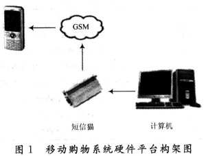 以GSM網(wǎng)絡(luò)作為遠(yuǎn)程信號(hào)的傳輸平臺(tái),短信息作為傳輸數(shù)據(jù)的載體,構(gòu)建了基于GSM模塊的移動(dòng)購(gòu)物系統(tǒng),包括硬件平臺(tái)和軟件平臺(tái)。