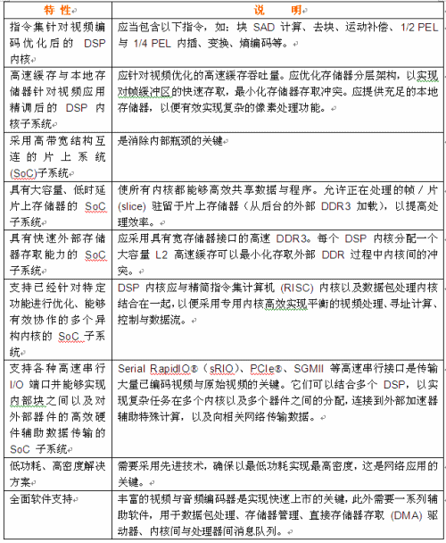 表1. 多媒體專(zhuān)用多核DSP重要特性