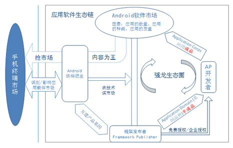 Android終端領(lǐng)主將在Android應(yīng)用軟件市場起到風(fēng)向標(biāo)、領(lǐng)導(dǎo)者的作用。他們就是Android終端領(lǐng)主,這個(gè)領(lǐng)域的超級(jí)大鱷。他們通過各種方式途徑將框架軟件成品最終送達(dá)用戶,在用戶的硬件上得以呈現(xiàn),通過Android終端領(lǐng)主,框架軟件生態(tài)才有價(jià)值的循環(huán)回報(bào)。價(jià)值產(chǎn)生的市場就是眾多硬體廠家、電信運(yùn)營商家的應(yīng)用商城。