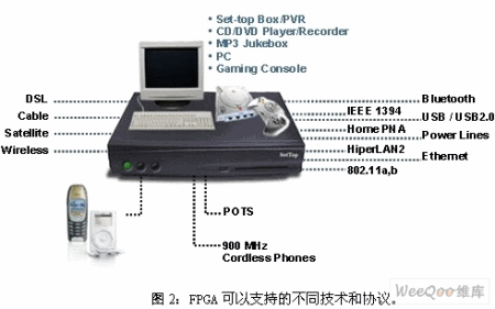 多年來,低成本FPGA器件已經(jīng)成為機(jī)頂盒和視頻網(wǎng)關(guān)的關(guān)鍵器件,可提供視頻增強(qiáng)、丟失像素替換、視頻轉(zhuǎn)換、產(chǎn)品靈活性以及產(chǎn)品差異等功能。此外,這些器件還允許生產(chǎn)商方便地支持不同的技術(shù)和協(xié)議,如圖2所示。