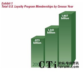 據(jù)權(quán)威的客戶(hù)忠誠(chéng)度研究機(jī)構(gòu)COLLOQUY在2009出版的一份報(bào)告,2008年底,全美客戶(hù)忠誠(chéng)度計(jì)劃的參與人次達(dá)到18.07億,平均每個(gè)美國(guó)家庭參與了14.1個(gè)忠誠(chéng)度計(jì)劃,相較2006年底的13.41億參與人次,共增了了24.73%(連續(xù)兩年環(huán)比增長(zhǎng)12%/年),而同期美國(guó)的GDP增長(zhǎng)僅為2.2%。從這一點(diǎn)上看,美國(guó)企業(yè)對(duì)忠誠(chéng)度營(yíng)銷(xiāo)的熱情不減,盡管忠誠(chéng)度營(yíng)銷(xiāo)在美國(guó)已相當(dāng)成熟,但美國(guó)企業(yè)仍然把它當(dāng)作是營(yíng)銷(xiāo)的重要工具。